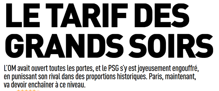 C’est une performance marquante pour le PSG, qui a su cette fois mettre le bon contenu et de l’efficacité. Même si, finalement, Paris aurait pu faire encore plus mal alors que les montants ont été touchés 4 fois. Ce 5-0 reste très fort et intéressant pour la confiance. Avec un peu de repos et une infirmerie qui se vide, ainsi que les matchs emmagasiner, les Parisiens ont retrouvé des forces afin de dominer très largement l’OM. Autant dans le jeu que l’intensité.