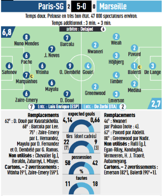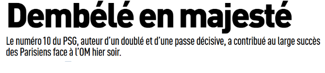 Revue de presse : PSG/OM, une « claque » avec Dembélé et Mendes magistraux