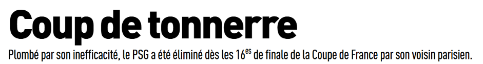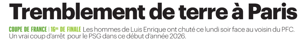 Ce mardi 13 janvier, la presse française (sur l’aspect sportif) s’est concentrée du côté du Paris Saint-Germain sur l’élimination en 16e de finale de Coupe de France hier soir contre le Paris FC au Parc des Princes. Un 0-1 qui fait mal.