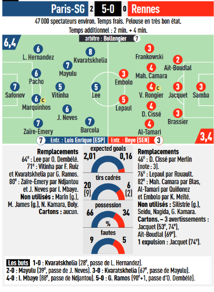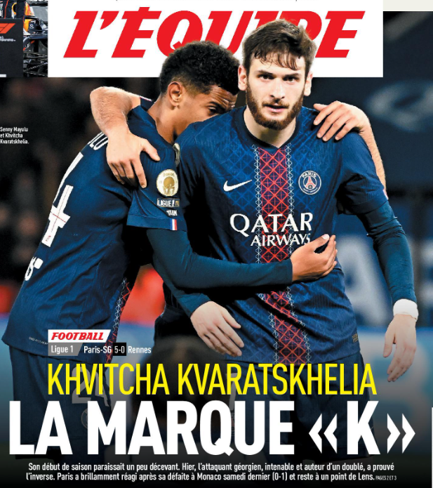 Revue de presse : PSG/Rennes, retour aux habitudes avec Kvaratskhelia en forme