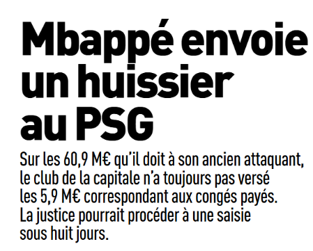 Ce samedi 7 février, la presse française (sur l’aspect sportif) s’est concentrée du côté du Paris Saint-Germain sur l’évolution de la masse salariale, le retour en forme de Warren Zaïre-Emery (milieu de 19 ans), l’absence de Fabian Ruiz (milieu de 29 ans) pour la réception de l’Olympique de Marseille dimanche et Kylian Mbappé qui a envoyé un huissier au PSG.