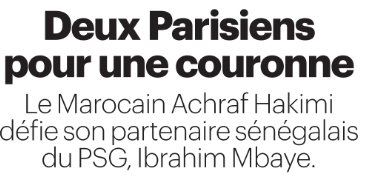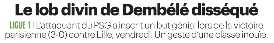 Ce dimanche 18 janvier, la presse française (sur l’aspect sportif) s’est concentrée du côté du Paris Saint-Germain sur le lob magistral d’Ousmane Dembélé (attaquant de 28 ans) contre Lille vendredi, le projet d’une filiale NBA, le recrutement de Dro Fernandez (milieu de 18 du FC Barcelone) et la finale de la CAN entre le Sénégal et le Maroc ce soir (à 20h) qui va opposer Ibrahim Mbaye (attaquant de 17 ans) à Achraf Hakimi (latéral droit de 27 ans).