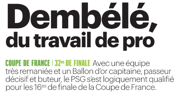 Revue de presse : Vendée Fontenay/PSG, Dembélé et Hakimi
