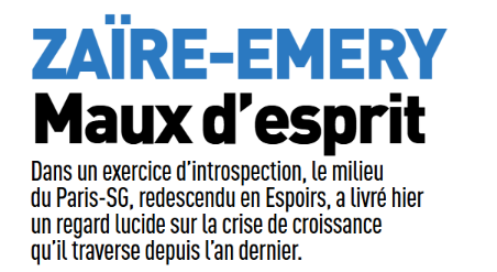 Quant à Zaïre-Emery, il s’est confié sur le fait de se « brider » tout seul et le besoin de retrouver de la confiance. Le coach Luis Enrique l’aide pour cela et le Titi évoque lui-même du mieux dernièrement. Il faudra maintenant réussir à enchaîner. La mission est de retrouver l’audace dans son jeu afin de faire plus de différences, ainsi qu’une précision technique un peu en berne.