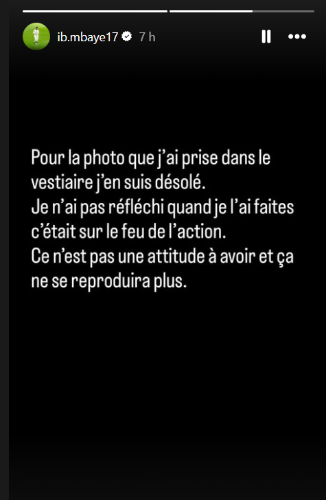La finale de la CAN 2025, remportée dimanche soir par le Sénégal contre le Maroc après prolongation (1-0), a été marquée par des moments un peu fous et, malheureusement, de grandes tensions. Notamment, autour d’un penalty accordé à la fin du temps réglementaire aux Marocains. Les Sénégalais ont refusé de jouer pendant un moment et sont allés jusqu’au vestiaire. Là, Ibrahim Mbaye, attaquant de 17 ans du Paris Saint-Germain et des Lions de la Teranga, a répond à un message sur Snapchat afin de critiquer l’arbitrage. Sa photo a été partagée sur les réseaux sociaux et le Titi parisien s’est excusé aujourd’hui.