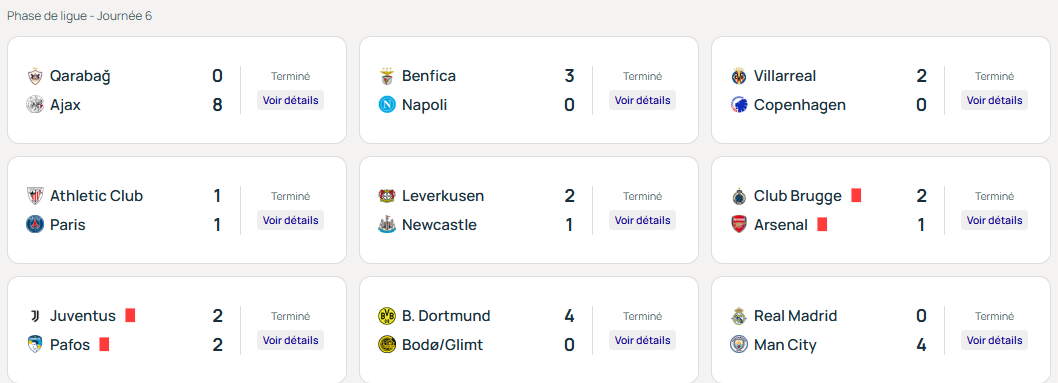Cette semaine s’est jouée la 6e journée de la Youth League 2025-2026. Voici les résultats de cet équivalent de la Ligue des Champions pour les U19, en seulement 6 journées, avec le Paris Saint-Germain qui a fait match nul 1-1 contre l’Athletic Bilbao et termine parmi les qualifiés.
