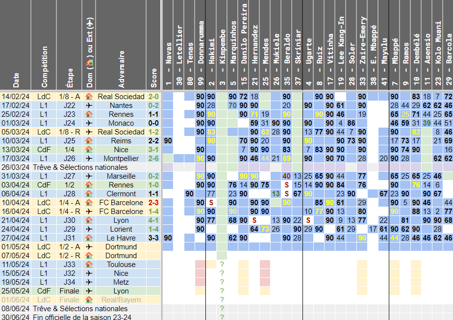 Remplaçants : K. Navas, A. Tenas, L. Beraldo, Danilo, N. Mukiele, M. Skriniar, K. Lee, S. Mayulu, C. Soler, M. Ugarte, M. Asensio, R. Kolo Muani, G. Ramos.