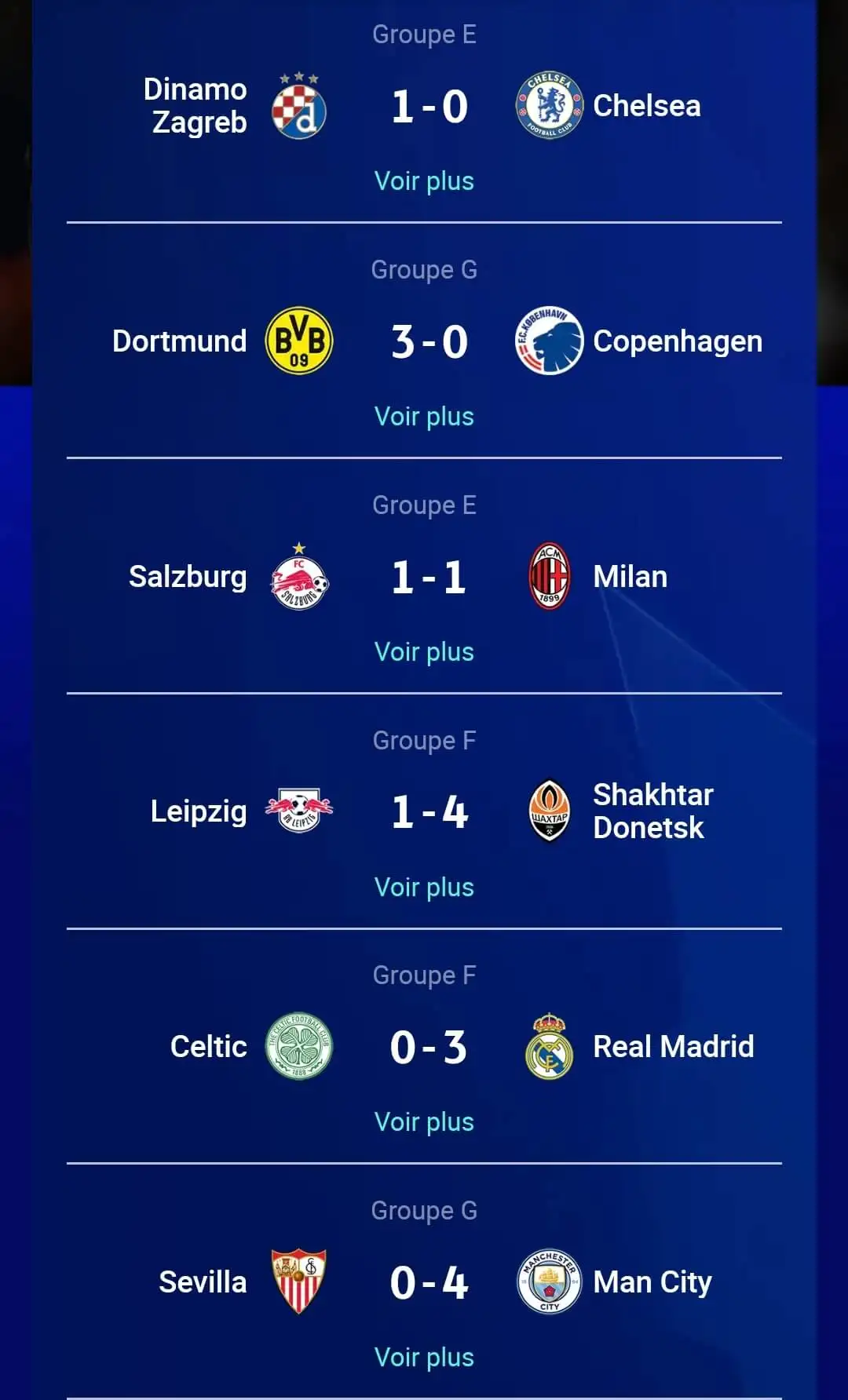 LDC – Les résultats de mardi de la 1ere journée des groupes