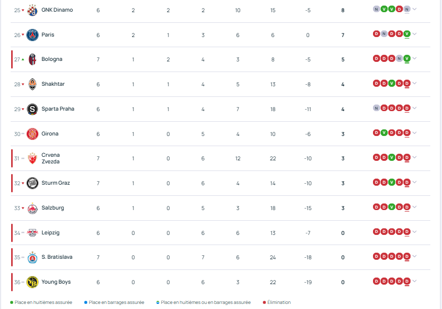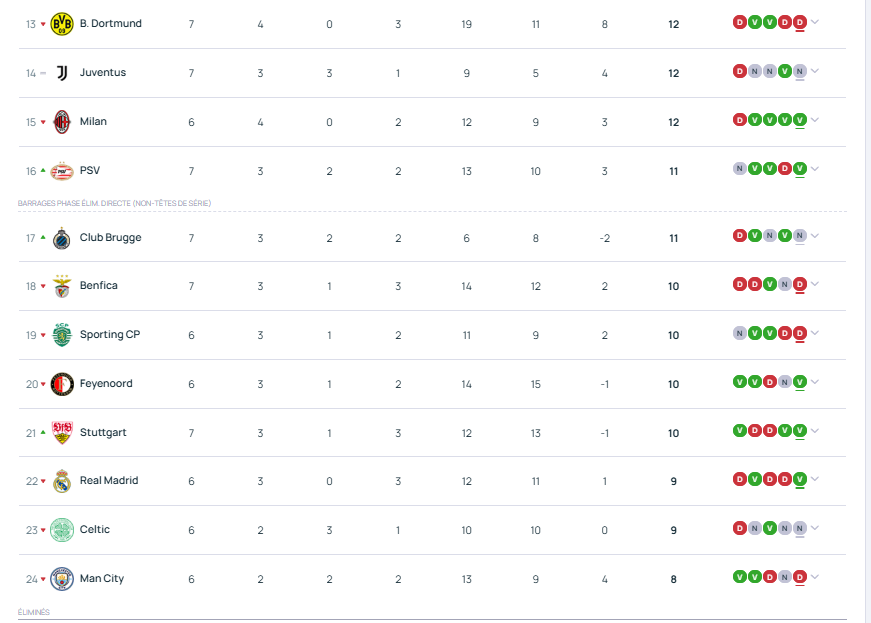 Ligue des Champions – Les résultats de mardi de la 7e journée et le classement