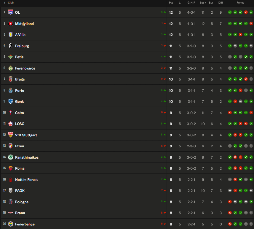 Ligue Europa Conférence – Les résultats de la 6e journée et le classement