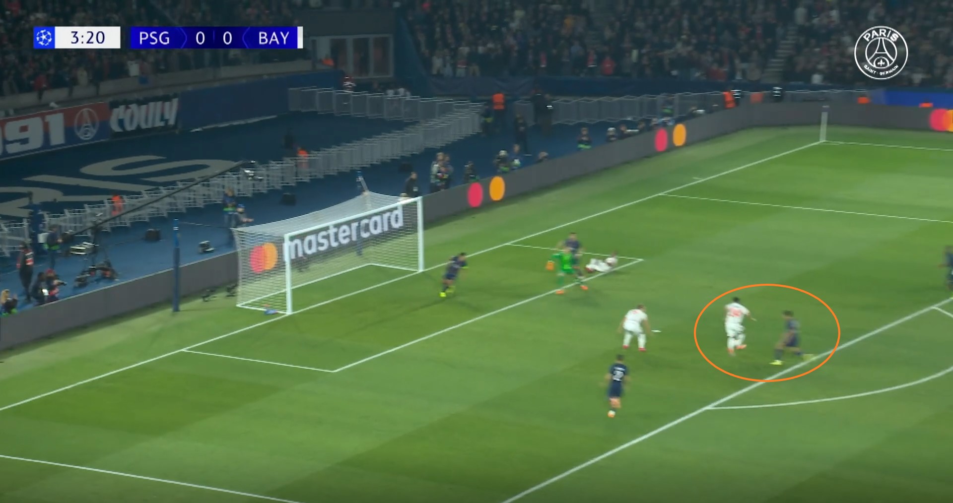 Comment évoqué juste au-dessus, Diaz est devant Zaïre-Emery dans la surface, Vitinha n’est pas encore visible. Il y a eu un écart dans la transition et il se paye très cher. On ne voudrait pas dire que les Parisiens n’avaient pas envie, c’est un résumé trop facile et souvent ridicule. Mais « moins » envie, moins de hargne et de détermination, c’est possible. Surtout que ce but n’est qu’un exemple de plusieurs situations dans cette mi-temps où le Bayern a été plus agressif et réactif.
