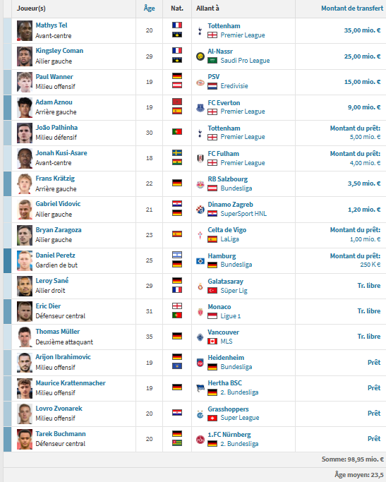 La situation du Bayern –