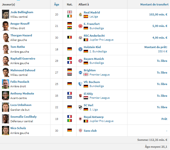 Source : Transfermarkt.