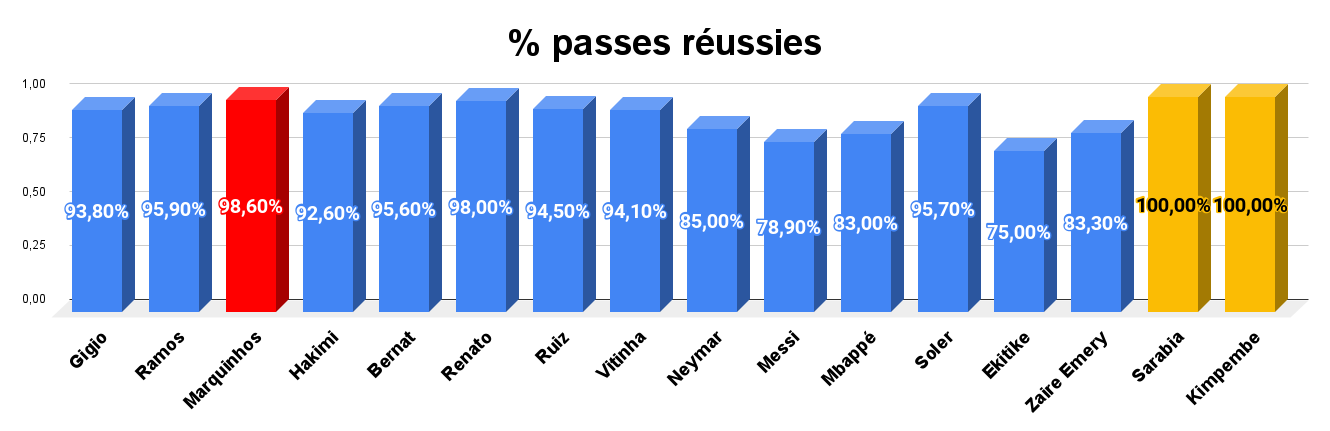 20/29 – Le PSG a réussi 20 longs ballons sur 29
