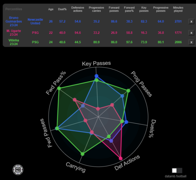 Guimarães vs Vitinha/Ugarte