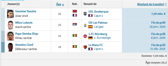 Source : Transfermarkt.