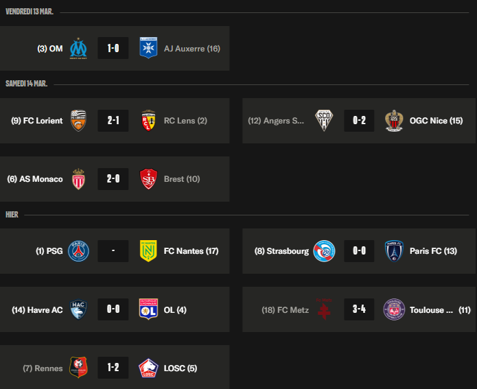 Ligue 1 – Ce qu’on retient de la 26e journée : Lens se loupe, l’OM 3e