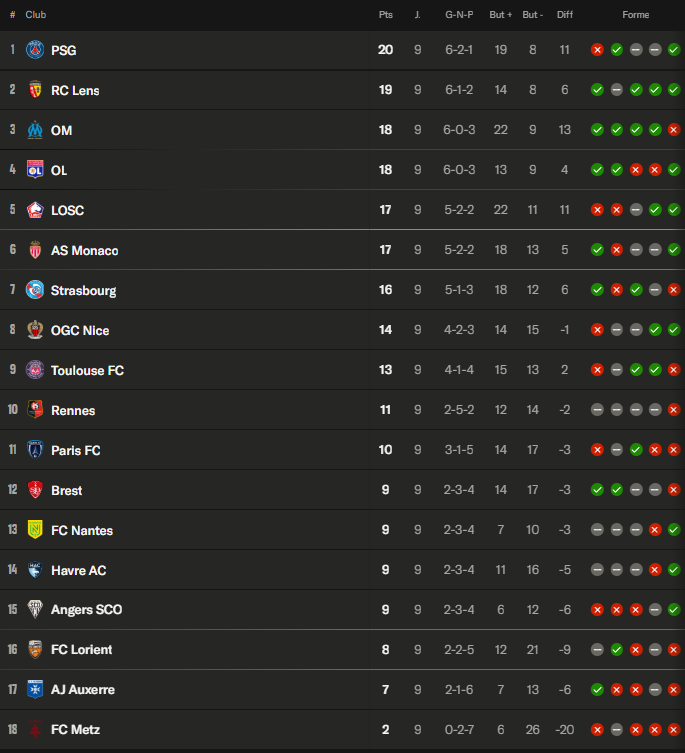 Ligue 1 – Ce qu’on retient de la 9e journée : le PSG premier, Europe et maintien intenses !