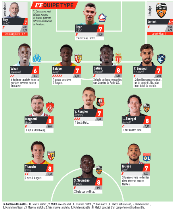 Ligue 1 – L’équipe-type de la 14e journée de L’Equipe, sans le PSG