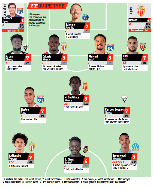Ligue 1 – L’équipe-type de la 20e journée de L’Equipe, avec le PSG