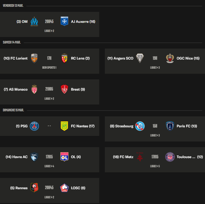 Autour, l’OM (3e) sera favori face à Auxerre (16e), mais on sait qu’un match de football n’est jamais joué d’avance et les Auxerrois sortent d’un bon point pris contre Strasbourg. Un 8e qui doit se relancer contre le Paris FC, 13e qui se bat pour assurer le maintien.
