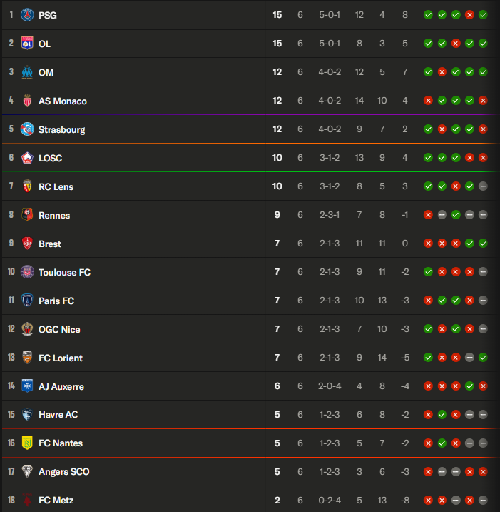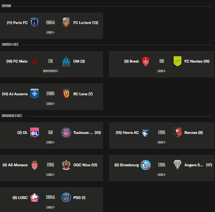 Derrière ce joli top 5 (6, avec Lille), Lens (7e) et Rennes (8e) doivent s’accrocher. Ne pas s’imposer contre Auxerre (14e) et Le Havre (15e) serait une déception. C’est le moment pour se placer pleinement dans la course. Même si les adversaires n’ont pas prévu de faire un cadeau.