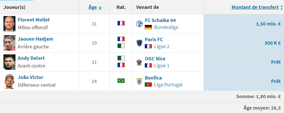 Absents – S. Corchia, A. Delort, Q. Merlin, C. Traoré (blessures).