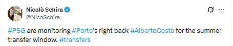 « Le PSG suite le latéral droit de Porto Alberto Costa pour le mercato estival. »