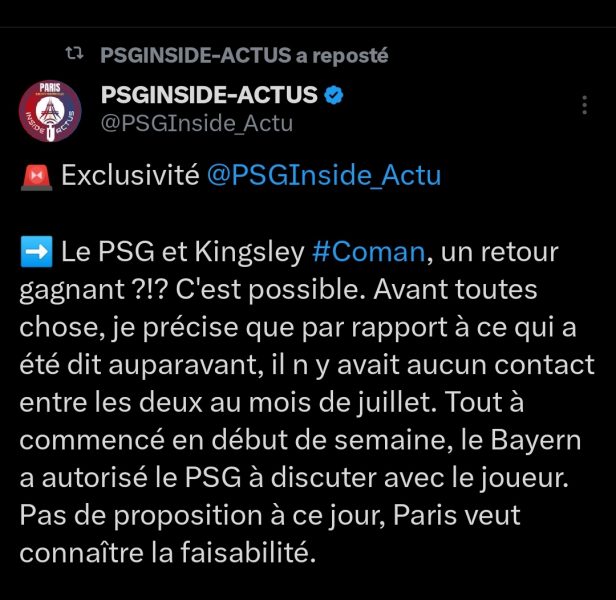On continuera donc de patienter, en espérant des éléments concrets prochainement. Autant dans le dossier Coman que pour le reste du mercato du PSG.