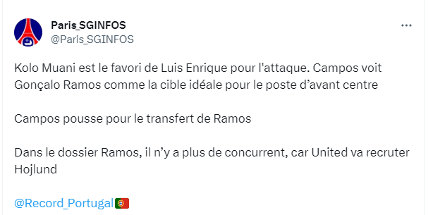 Mais il faut aussi que le transfert soit raisonnablement possible. Et ici, on ne peut pas être sûr des préférences de chacun. Même si Kolo Muani, polyvalent et capable de servir ses coéquipiers, pourrait bien correspondre au style du coach espagnol.